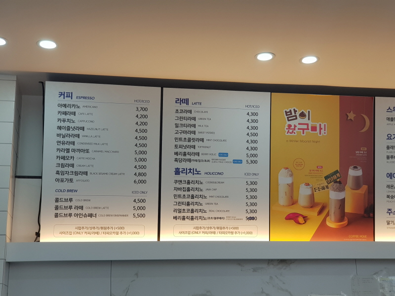 아메리카노는 3,700원, 카페라떼는 4,200원으로 저렴한 편이에요.