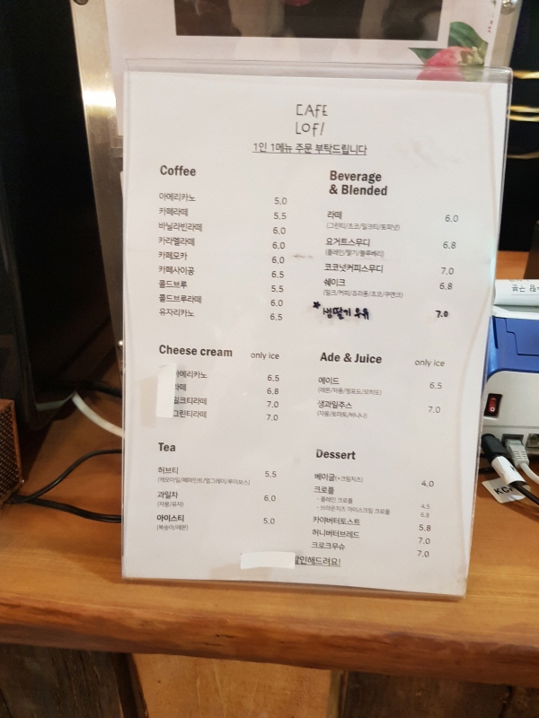 방에도 메뉴판이 있어서 전화로 주문할 수 있는데, 1층 카운터에 붙어져있는 가격과 달라서 어느 것이 맞는지 모르겠어요.