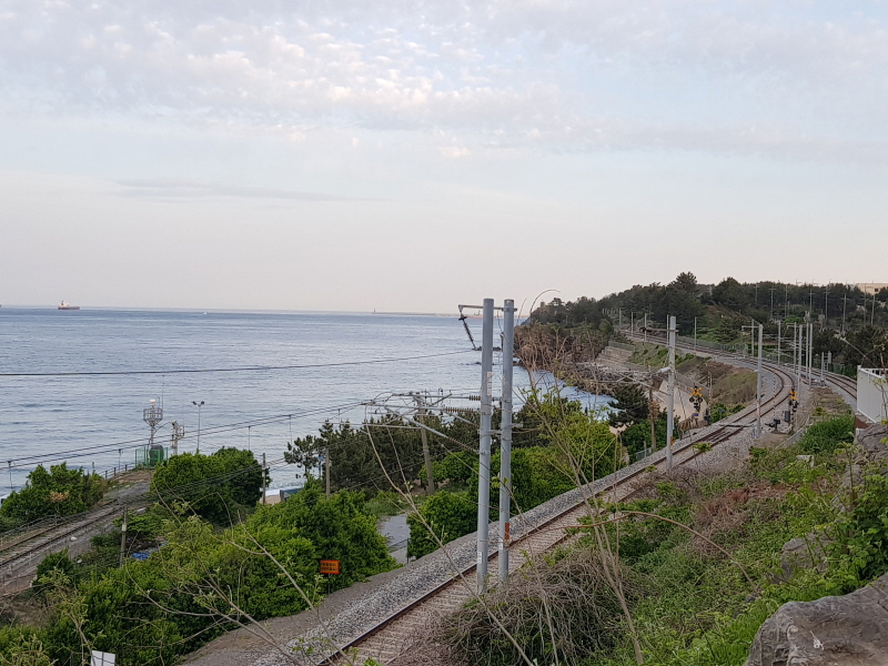 철로는 묵호역과 동해역을 잇고 있는데, KTX부터 무궁화호, 관광열차까지 다양한 열차가 지나가요.