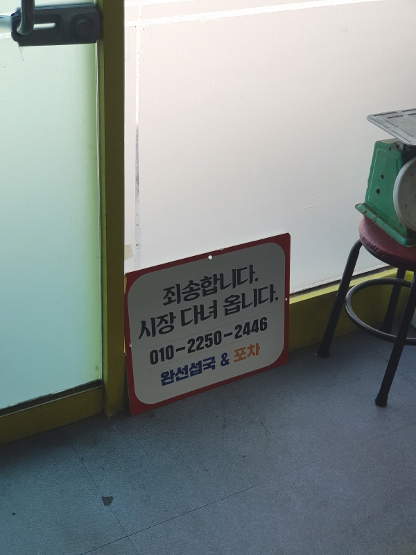 시장에 다녀온다는 간판이 입구에 있는 걸 보고 신선도에 대한 신뢰도가 매우 증가했습니다.