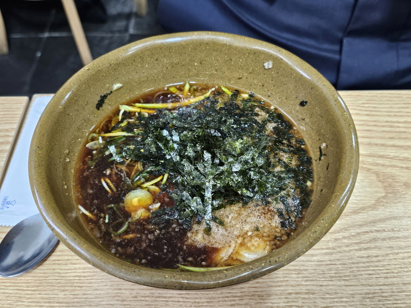 뜨거운 육수에 면이 불어서 따뜻하면서도 좀 더 부들부들한 식감이 나는데, 쫄깃한 면을 좋아하시는 분이라면 아쉬울 수 있겠어요.
