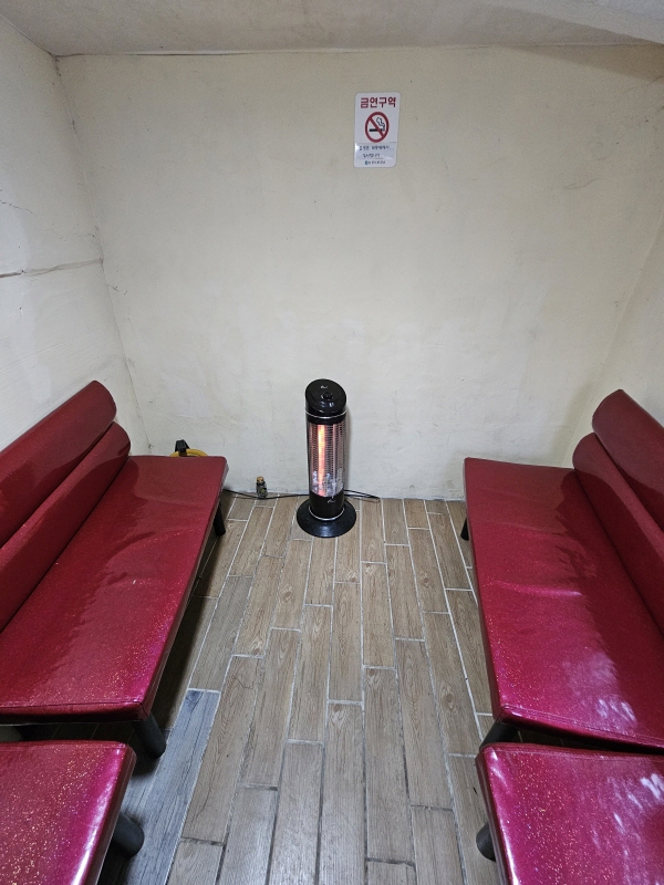 문이 천 같은 거라서 딱히 따뜻하지는 않지만 난로도 켜놓았어요.