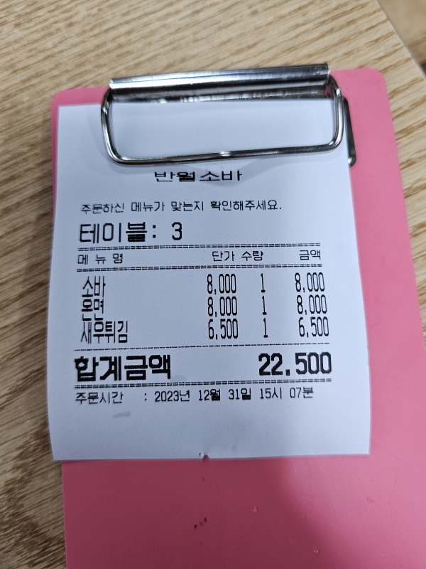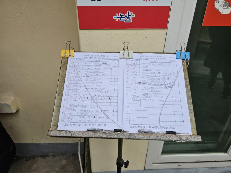 입구에 적은 메뉴가 이미 주문된 상태라, 자리에 앉자마자 받은 계산서가 내 주문내역이 맞는지만 확인하면 되거든요.