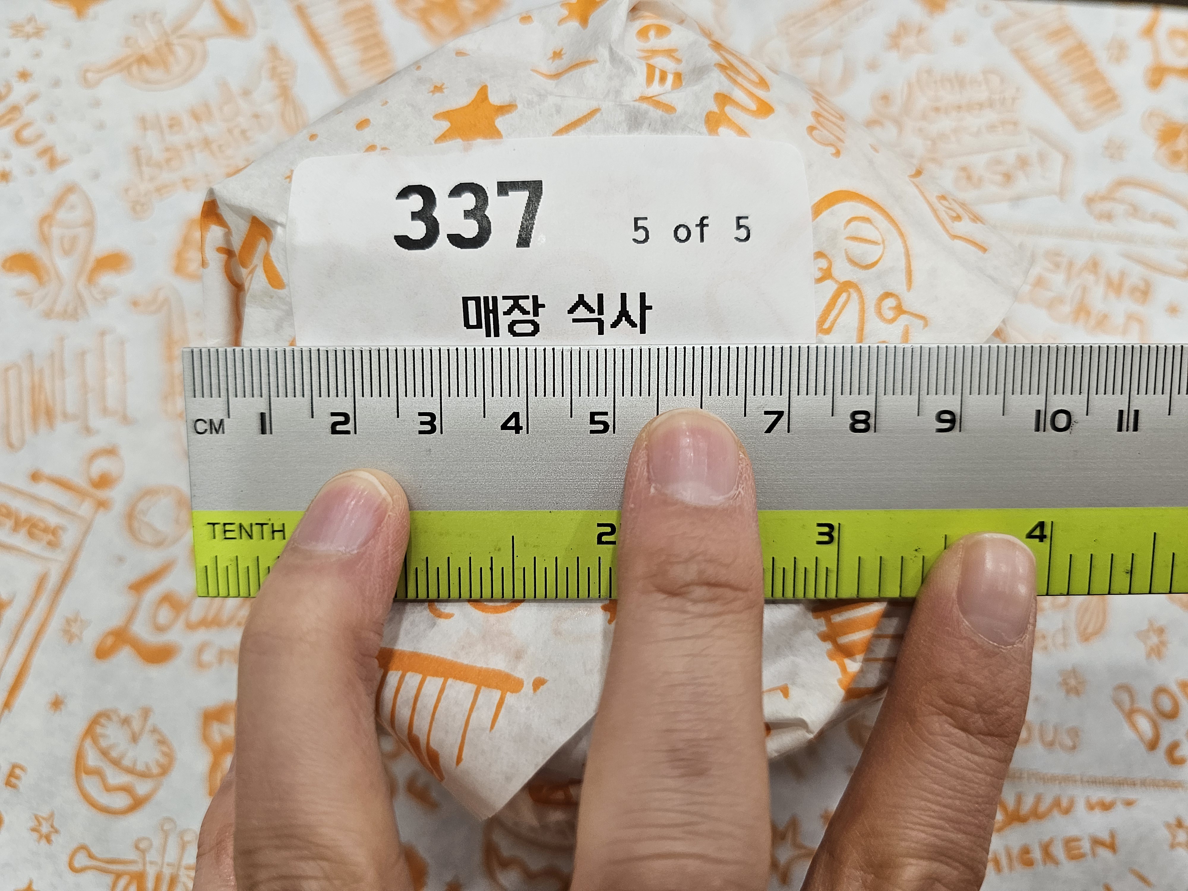 대략적으로 봤을 때 KFC 징거버거보다는 두툼한 편이고, 맘스터치 싸이버거와 비슷한 느낌이에요.