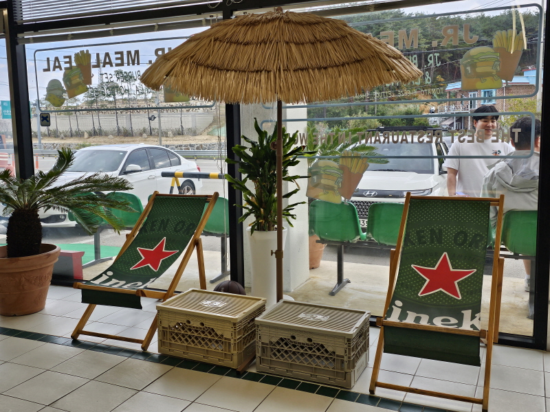 매장은 휴양지 느낌이 나게 꾸며져있어요.