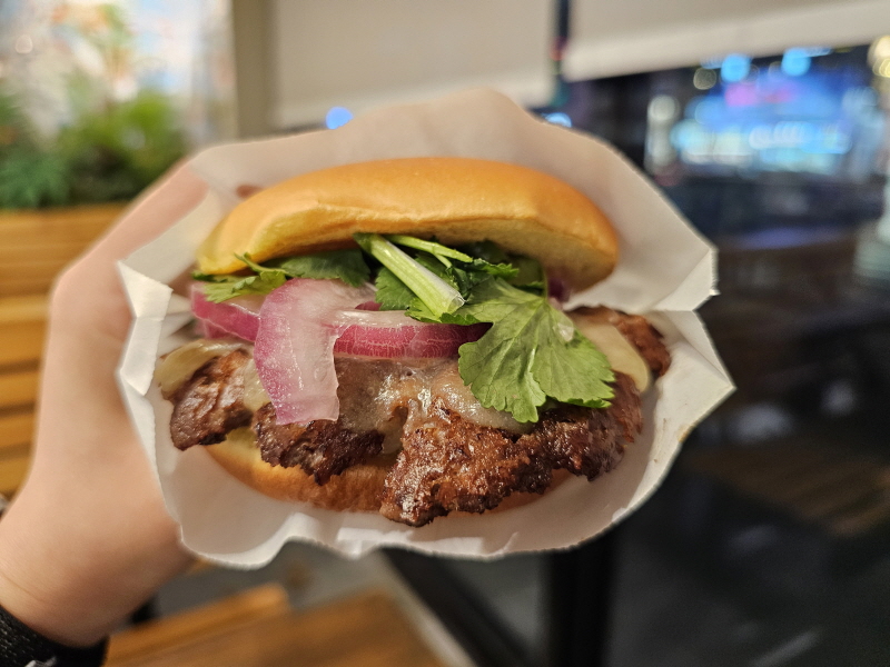 쉐이크쉑이라 가격이 좀 비싸지만, 소스의 매콤함과 피클의 상큼함, 고수의 향긋함이 잘 어울렸던 버거였어요.