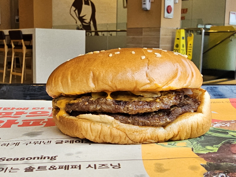 더블 패티임에도 불구하고 싱글 패티 버전과 큰 차이가 없고, 오히려 좀 더 작은 거 같은 느낌도 들었어요.