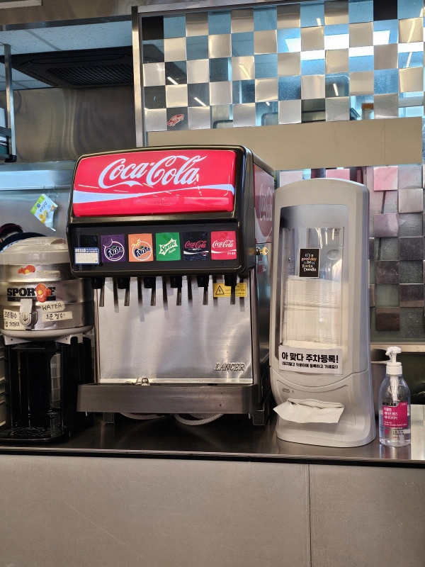음료는 코카콜라, 제로콜라, 스프라이트, 오렌지맛 환타, 포도맛 환타, 이렇게 5가지가 있어요.