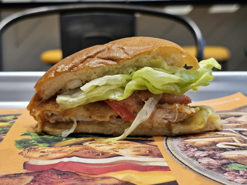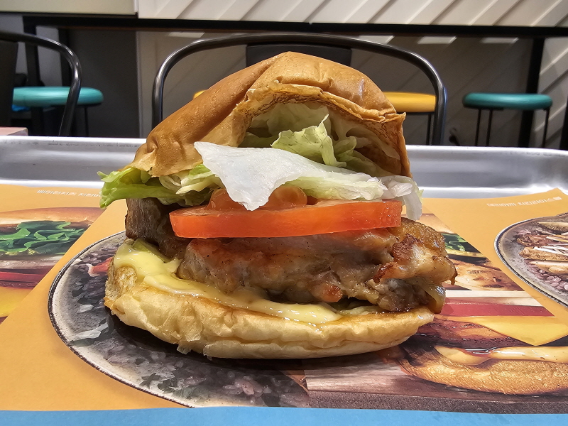 구운닭가슴살을 사용해서 담백하면서도 쫄깃한 식감도 있고, 야채도 많이 들어서 건강식 같은 느낌이 나요. 치빈버거지만 먹고 나서도 입가에 기름이 번들거리지 않고요.