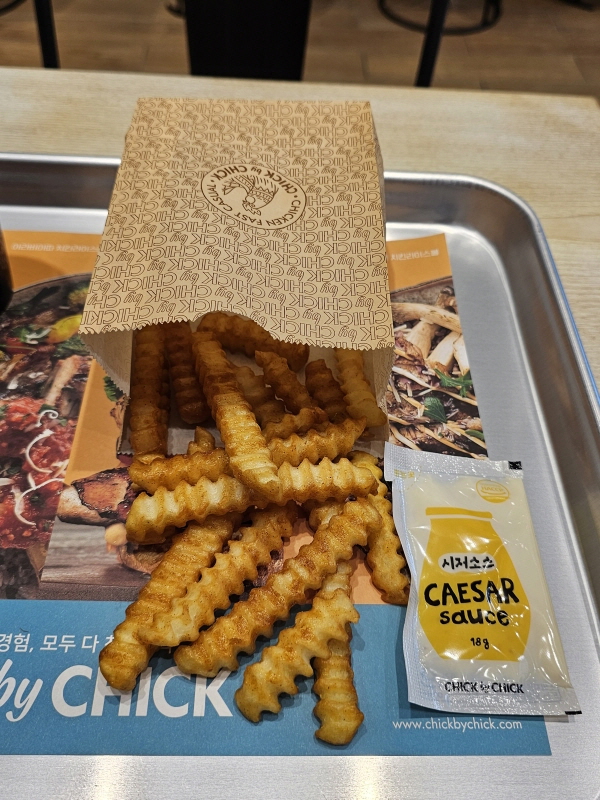 찍어먹는 소스는 기본이 시저소스였고, 케첩으로 변경도 가능하더라구요.