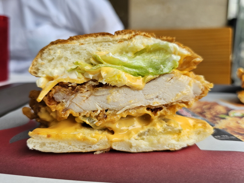 딥프라이한 닭다리살 패티에 슬라이스와 치즈 소스까지 왕창 들어갔는데, 느끼함을 잡아줄 건 피클 정도 밖에 없거든요.
