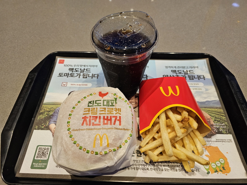 이번에 나온 메뉴는 진도 대파크림 크로켓버거, 진도 대파크림 치킨버거, 진도 대파크림 크로켓 머핀, 이렇게 3가지에요.