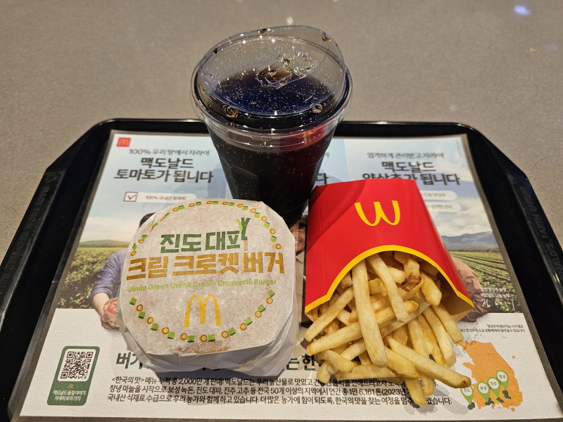 이번에 나온 메뉴는 진도 대파크림 크로켓버거, 진도 대파크림 치킨버거, 진도 대파크림 크로켓 머핀, 이렇게 3가지에요.