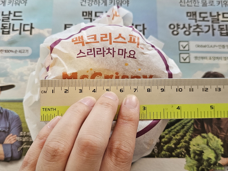 포장지는 맥크리스피 스리라차 마요 전용 포장지를 사용하고 있어요.