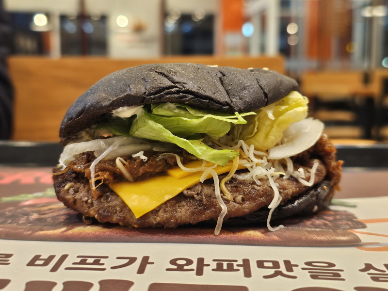 4가지 종류의 치즈가 들어간 거 보면 콰트로치즈 풀드비프 와퍼가 맞긴 한데, 블랙번으로 사용하는 거 보면 두툼버거와 닮은 거 같기도 해요.