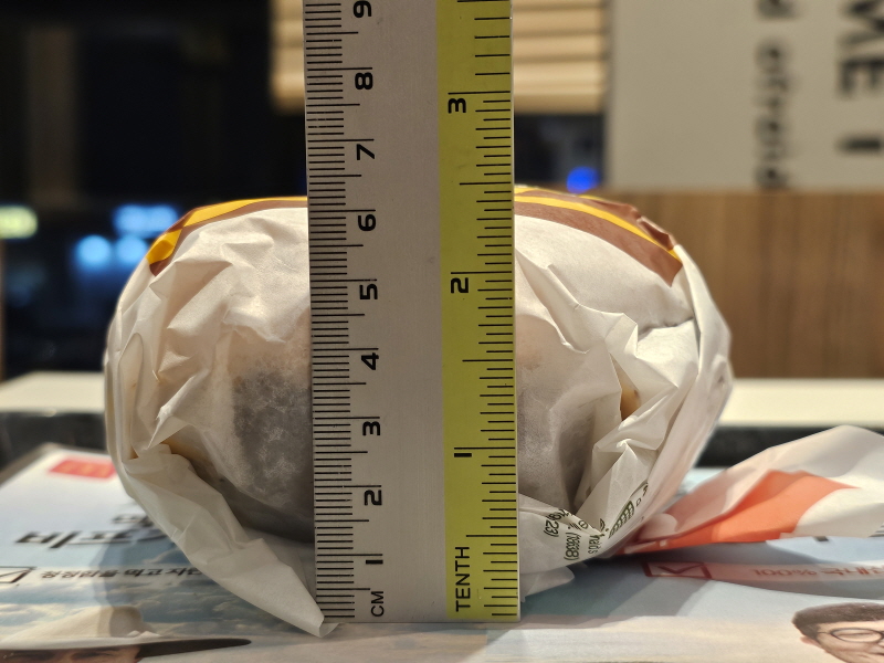 쿼터파운더 치즈는 야채가 없어서 두께가 좀 얇은 편인데, 더블패티라서 그런지 그래도 두께감이 있어요.