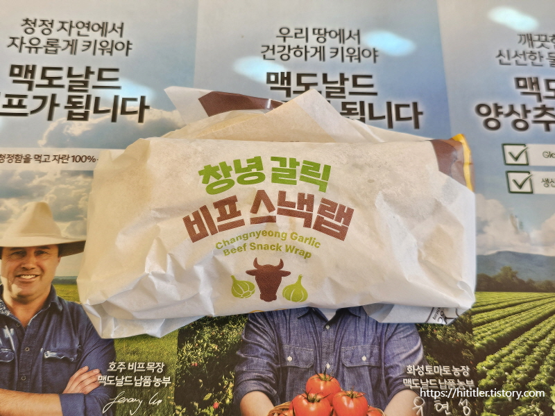 이번에 나온 메뉴는 창녕갈릭 비프스낵랩이에요.