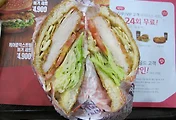 양상추와 토마토도 듬뿍 들어있고, 어니언 크림 소스는 살짝 달짝지근한 맛을 더해주고요.
