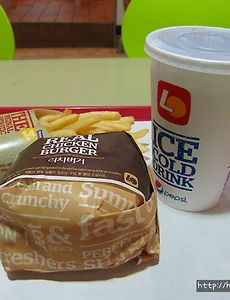 데리버거 세트 1달만에 다시 찾은 롯데리아.데리버거는 불고기버거, 새우버거와 함께 대표 메뉴 중 하나예요.제가 처음 먹은 패스트푸드 햄버거이기도 하고, 또 가장 많이 먹은 햄버거예요.초등학교 시절 매주 주말마다 도서관에 간다고 하면서 점심으로 꼭 데리버거를 먹었거든요.데리버거 가격은 단품 2,500원, 세트 4700원이고, 런치타임에는 2900원이예요.칼로리는 단품이 358kcal, 세트가 752kcal 이예요. 데리버거는 4호번에 미트패티, 양상추, 마요네즈, 양파,데리야키 소스로 구성되어 있어요.소스가 다르다고는 하지만, 사실 맛은 불고기버거랑 비슷한 거 같아요.특별한 맛까지는 아니다만, 제게는 나름 추억의 맛이라 언제 먹어도 맛있게 느껴져요.달래 스테디 메뉴가 아닌가 해요.다만, 양이 적은 게 아쉬..