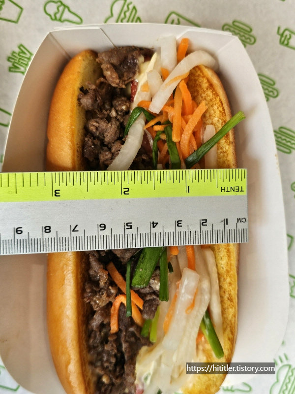 기본으로 판매하는 핫도그에 더 불고기쉑이 들어가는 불고기와 채소 피클, 소스가 추가적으로 들어간 구성이에요.