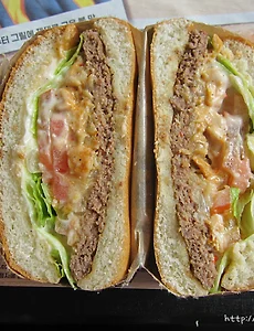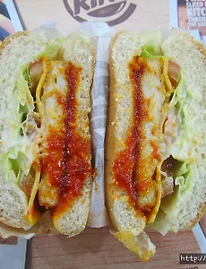 칠리치즈치킨버거는 버거킹 메뉴 중에서 그리 잘 알려진 메뉴는 아니에요.저도 늘 버거킹 가면 와퍼를 먹었던 터라 이런 메뉴도 있었다는 사실을 이번에 처음 알았어요. 칠리치즈치킨버거 콤보 칠리치즈치킨버거 가격은 단품 2,700원, 세트 4,700원이예요.아예 저렴한 가격을 메리트로 내세우는 더블킹 세트 종류를 제외하면 버거킹 메뉴 중에서 저렴한 메뉴예요.저는 시럽앱에서 쿠폰을 다운받아서 칠리치즈치킨버거 콤보를 2,500원에 구입했어요.칼로리는 단품 400kcal, 세트 835kcal 이예요. 반으로 컷팅하니 피틑 토하듯한 붉은 소스가 인상적이었어요.가격이 저렴해서 그런지 버거 사이즈도 작았는데, 아마 더블킹 세트 종류와 같은 번을 쓰는 듯 해요.구성은 번에 양상추, 토마토, 슬라이스치즈, 치킨패티, 마요네즈..